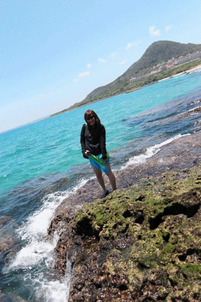 姐不怕高,所以才能坐在這麼高的礁岩上拍照